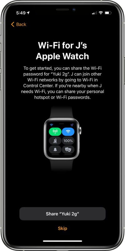 - 10.You may also opt to set up wireless service at a later time and rely on WiFi, but without an iPhone, cellular is essential for continuous connectivity. Tap Share your WiFi password with your Apple Watch after you set up your mobile phone or miss it until later.