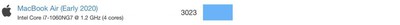 In terms of benchmarks, the i7 hardly performs better than the i5, earning a single-core score of 1137 and a multi-core score of 3032. The i5 chip seems to provide greater value for money in terms of price-to-performance.