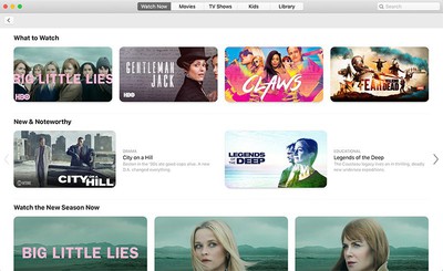 There is also a library feature that contains all the TV shows and videos you have bought from iTunes, along with Movies, TV Shows, and Kids tabs for both finding new content and purchasing or renting movies and TV shows.